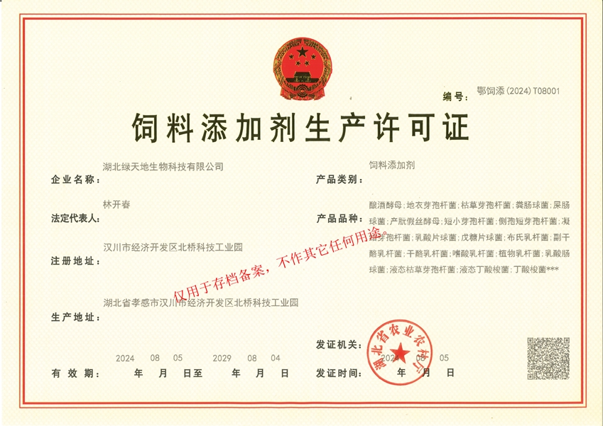 湖北綠天地生物科技有限公司 (簡(jiǎn)稱綠天地公司)投資7000萬元,擁有25000平方米的廠房和國(guó)內(nèi)先進(jìn)的設(shè)備360臺(tái)套,建有微生物發(fā)酵、發(fā)酵冷凍干燥、低溫造粒等8個(gè)車間,發(fā)酵罐總?cè)萘?50立方米,專業(yè)的飼用級(jí)益生菌發(fā)酵生產(chǎn)基地。 公司已通過IS09001:2015質(zhì)量管理體系認(rèn)證。 綠天地公司得到了華中農(nóng)業(yè)大學(xué)、中國(guó)農(nóng)...